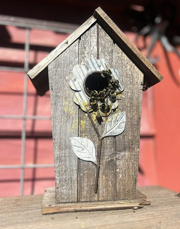 We can relocate native bumblebees, but if you can manage to enjoy their nonaggressive and brief presence, they would be doing a great service to your local ecosystem